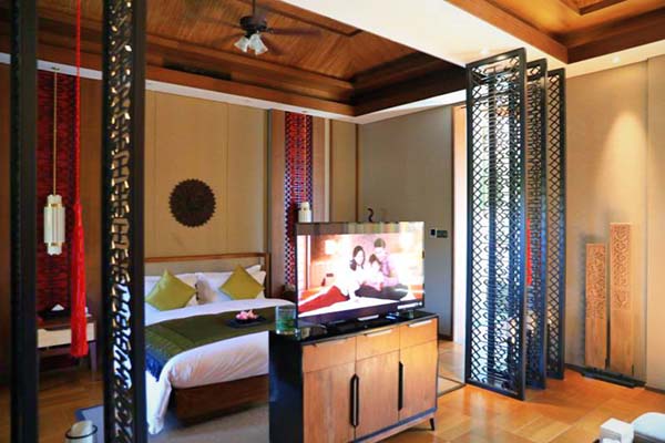 計12間客房。易湯東方房間內(nèi)設(shè)有SPA區(qū)域配有SPA床及休閑小院,獨立庭院含有一個室外泡池。房間內(nèi)配有特色精油浴、花瓣浴、牛奶浴等舒適服務(wù)。