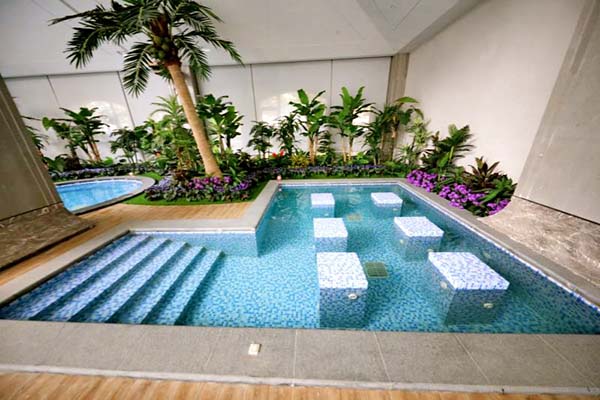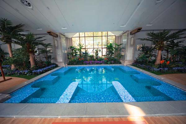 海洋療法”為特色的五星主題酒店,占地8.3萬平米,共有室外泡池30個,室內(nèi)泡池37個。