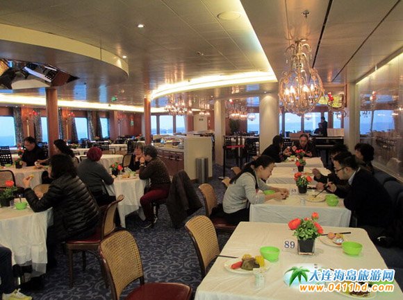 吃是人的第一需要,吃好也是一種享受。位于郵輪五層船尾的“望海軒餐廳”寬敞明亮,雖然一次能容納近五百人用餐,但全體游客也得分二批用餐。各式各樣的中西菜品、甜品、果品任你挑選品嘗,應有盡有,從不斷檔。我發現,人人都放開肚皮在吃,我也不例外,不吃到嗓子眼不罷休。如果仍不滿足,你帶出去一點食品也沒人管你。餐廳外的甲板上也備有數張餐桌,如果你想用餐的同時觀賞海景,可以去那兒,這時候,面對大海喝個小酒,也別有滋味。